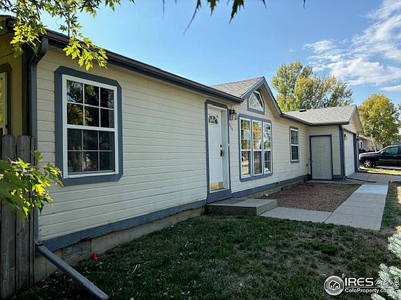 Great opportunity to own this affordable modular home where you own the land and there is NO lot rent! Enter into a sunny living room that is open to the kitchen w/ stainless appliances. Primary bedroom has private 3/4 bath and walk-in closet. Opposite side of the home offers a 2nd bedroom, full bath, and a study/office that could function as a 3rd bedroom. Step out back on the covered deck overlooking a huge back yard that looks out on a pasture. 2-car garage. This home needs some work but has great potential. Conveniently located in South Loveland w/ easy access to Hwy 287 and I-25.