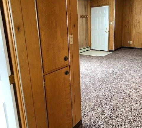 Quiet neighborhood, near park and grocery, underground sprinklers , storage shed, mini blinds, heat-gas,hot water baseboard,carpeted, comes with washer/dryer. Photos are of a similar unit. Owner pays for garbage,one can per duplex, no pets, tenant does lawn care and snow removal on sidewalk, no smoking,$25 background search.