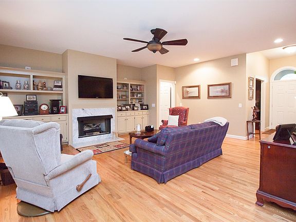 One level living with huge bonus room. Split floorplan with hardwood floors in foyer, LR, DR, den, kitchen, & breakfast area. LR has built in bookcases & marble fireplace. Kitchen w/ granite countertops & maple cab..