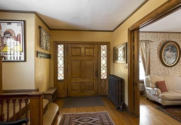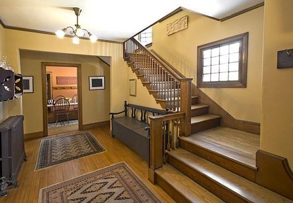 Just beautiful! This gracious, walk-to-town 5 bedroom 2.5 bath Victorian is one of a kind, with each room and detail distinguished by the elegant simplicity of its timeless design. The foyer welcomes you to the spacious family room, living room with woodburning fireplace, and gorgeous formal dining room. The generous kitchen features corian countertops, soapstone sink, wood flooring and door to side porch. 2nd floor offers master bedroom, office w/ stunning built-in bookcases and window seat, and three additional bedrooms! The private third-floor bedroom suite is perfect for guest space, with its own private bath and sitting area. The original woodwork is pristine, highlighting the castle-like front door w/ stained glass accents & the beautiful pocket doors that add to the wonderful flow and function of the first floor living space. Original hardwood floors throughout. Not to be missed! Showings begin at the open house Sunday April 2nd 12-2PM.