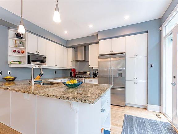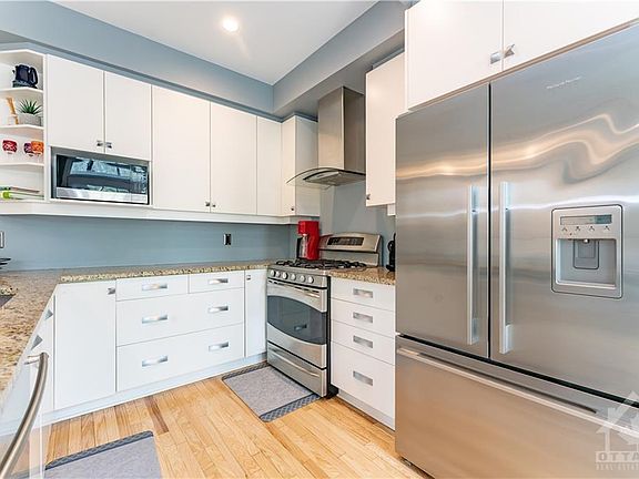 Spacious & stunning executive 2136 sq. ft. townhome built by Domicile. This 3-bdrm, 3 bath is one of the largest models in the perfectly located Merrion Square enclave in Little Italy. Tasteful, quality finishes, bright, open home with attached garage, full basement and private back yard. Large foyer, main level family room, powder, inside access to garage. Really large, open-concept living & dining space, with gas fireplace & built-ins and gorgeous hardwood floors throughout. Extra large eat-in kitchen with banquette, quartz counters, abundant storage and access to the private back yard space. 3 good size bdrms featuring Primary lux ensuite with separate tub and shower & two sinks, plus walk-in closet, main bath and laundry. Full unfinished basement for storage. Prime location blocks to Preston, LRT and Dow's Lake. Association fees include snow removal, sweeping, reserve fund, and management fees. 24hr Irrevocable. 2022-08-04