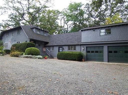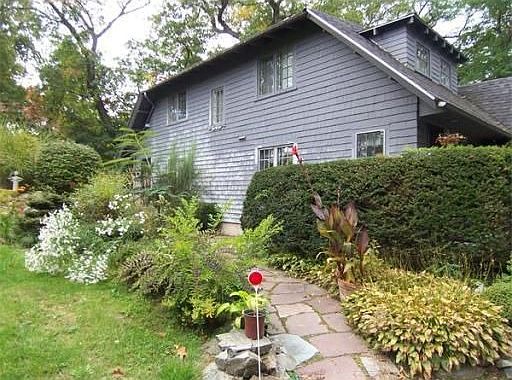 RARE OPPORTUNITY to own this former "Tea House". This special home situated on a private wooded 40,700 sf lot features 7 rms 2 bedrms, 1.5 baths in the main part of the home. Above the 2 car garage is a potential master suite that is framed, electrical has been installed and plumbing has been delivered to the room just waiting for your final improvements. 20ft high ceilings are found in the family room. POSSIBLE SECOND BUILDING LOT! Beautiful brick patio in backyard. Tons of Parking!!