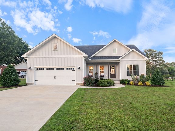 Built in 2023, you can have a like new construction home without the wait!! One level, open concept floor plan filled with natural light and nine-foot ceilings, luxury vinyl plank in living areas & ceramic tile in the bathrooms. The kitchen and bath both have granite countertops and all wood, soft close cabinets. There is ample space for a large dining table with extra seating at the kitchen island.This home is situated on a generous lot with mature landscaping already established and in place! Enjoy all four seasons on your covered back and rocking chair front porch. Conveniently located to schools and just a short drive from local amenities, you will enjoy the friendly small-town atmosphere of the community. Don't miss the opportunity to make this your dream home! Home is located in a USDA eligibility area. Buyers and buyers agent to verify all pertinent information.