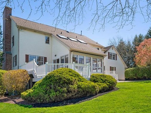 Custom built center-hall Colonial with 4 BR, 2-1/2 baths, 3423, sf on 3+ acres with a circular drive and a rocking-chair front porch. The home sits on a hill featuring a beautiful sunroom with skylights and a retractable awning, a two-level Trex deck and paver patio where you can relax and watch the perfect sunsets. This Colonial in the western part of Hillsborough is an oasis for the buyer who wants a home offering privacy, peace and quiet. The open floor plan features a large eat-in kitchen with an island and sliders to the sunroom, formal DR, formal LR with a wood-burning fireplace and a family room with a gas fireplace and French doors to the sunroom. The second floor offers a master suite, 2 full baths, 2 additional bedrooms and a huge 3rd BR/bonus room with a walk-in cedar closet and also has access from the garage. The walk-out basement is 14 courses of block and has rough plumbing perfect for additional living space and there is a workshop and access to oversized 3 car garage. There are 3 furnaces and 2 HVAC units. The septic system has been tested by Fine Engineering and repairs are scheduled and have been approved by Hillsborough Township Board of Health