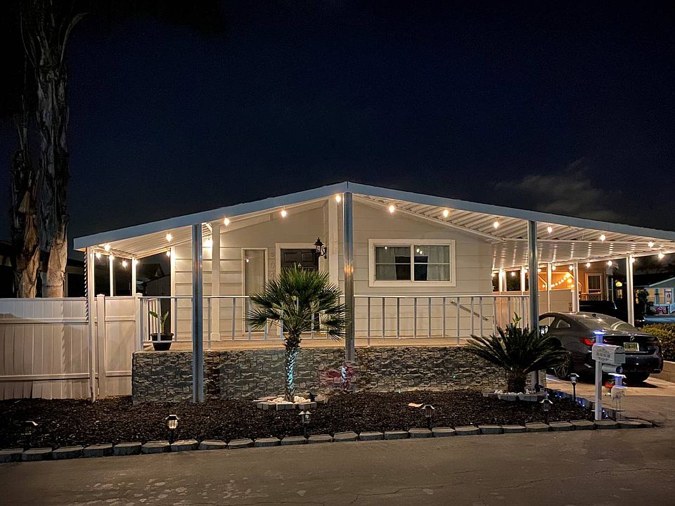 I live and work in the park! A must see new remodel inside and out. Large master with private bath and separate entrance. A good sized 2nd bedroom and 3rd bedroom. Open concept living room and kitchen area. Kitchen has full appliance package with ample storage. Beautiful and breezy huge front porch. Corner unit with L-shaped fenced yard great for the dog. Yard has a putting green. Up to 3 cars, covered carport near guest parking. *Home comes with a 1 year home warranty applied at closing. Fountain Valley Estates located in Fountain Valley at 9320 Talbert is an amazing family friendly community that offers so many extras including 192 home spaces each with its own private address, HUGE clubhouse with a/c, TV area, full kitchen, newly renovated heated pool & spa, pool area restrooms, 1 small indoor pets with walking in the park allowed and enclosed dog park area, basketball court, laundry room, car wash, green area, social group, on-site management. Close to great shops, transportation and restaurants. 6ft fencing allowed. Each person applying for residency in the community must complete an application and meet the residency requirements. Call me for information. All measurements are approximate. In-house financing available! * Incentives are for this house only and only paid at closing.