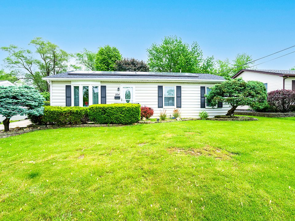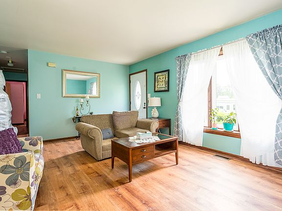 This nicely updated 3 bedroom, 1 bath ranch nestled on a friendly block offers an open floor plan & features: A sun-filled, spacious living room; Large kitchen with island, pantry, ceramic tile & all appliances; Dining area with door to the deck overlooking the tree-lined yard & oversized 2.5 car garage with attic storage; Updated full bath that boasts a new raised white vanity & gorgeous travertine tile flooring & detail; Luxury vinyl plank flooring throughout; Laundry room with service door to the yard; New windows 2021, doors 2022, Furnace/AC 2016, sump 2020; Transferable solar panels $33/month.