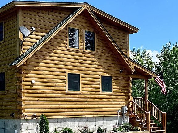 **PENDING**Location location & move in ready and enjoy!! What a spectacular example of the log home everyone dreams about. Quality is evident and is being sold completely furnished in immaculate condition. Situated on 1.25 acres in a cul-de-sac residential neighborhood, this 3 bedroom 2 1/2 bath, Coventry custom "Swiftwater" cabin with double dormers was built in 2015 has 151 feet of deeded riverfront to the beautiful and warm Ammonoosuc river. Perfect for fishing, swimming and tubing. Many upgrades were done in the building process with Anderson windows and doors, spray foam insulation, wooden trusses, hardwood floors, upgraded tile, stainless steel farmers sink, granite bathroom vanities, recessed lighting and 10 ft walkout basement ceilings. Features public water, 3 bedroom septic, and currently has Dish network and wifi installed. Enjoy multiple levels for lots of living options. Open concept featuring cathedral ceilings and ample windows which bathe the space in soothing, natural light. Walls are tongue and groove pine giving the entire living room, dining area and kitchen area a warm and satisfying feeling. Kitchen is well appointed with stainless steel appliances, granite counter tops an island work space and seating for 4. Main floor entrance welcomes you to a tiled 12x12 mudroom perfect and necessary for guests, and ski equipment. Main level has convenience of a half bath with laundry, open concept kitchen dining and living room, with sliders to the large wrap around oversized deck with cedar railings and locked storage under covered deck. Featured on the second floor are two bedrooms with a common full bath creating options for you and your guests. Lower walkout basement level boasts windows for natural lighting, a splendid gathering space /family room with double door access to an outside stone area with fire pit and short walking trail down to the river, another bedroom and full bath complete this unique home. Ideal for year-round enjoyment with excellent proximity to all seasons of recreation. Outside natural landscaping with a detached shed accommodating 1 snowmobile, just head out from the yard to NH maintained snowmobile trails. 10 minutes off I-93,15 Minutes to Bretton Woods, Cannon Mountain and Santa's village. Phenomenal second home or income property. An absolute must see!! Contact call or text Allison @ 603-401-2026, or acoles91@yahoo.com