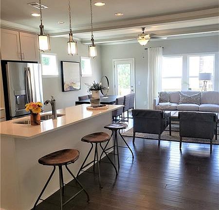 END UNIT- Floorplan called 'Deerwood.' Cozy home with hardwoods on main floor and stairs. Beautiful granite countertops with island and recess lighting above. Breakfast area overlooking the fireside family room with coffered ceilings. Separate dining room with butler pantry leading into the kitchen. Inviting master spa with tile floors, relaxing Garden Tub, separate shower, vanity/dual sinks, and walk-in closet. Media room/optional office/bedroom on terrace level. Community offers clubhouse with swim and tennis. LOW HOA fee, covers water/sewer/trash.