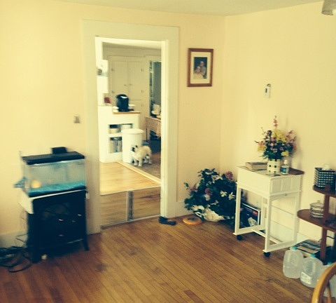 Renovated 1st floor apartment with 2 bedrooms and plenty of storage space! Two separate entrances, off street parking, and nice porch. Also fenced area for pets. Wood flooring, tiled kitchen and dining area, dishwasher and W/D hookups! Large yard with the option to garden, and more storage..Pets are negotiable, no utilities included oil heat.