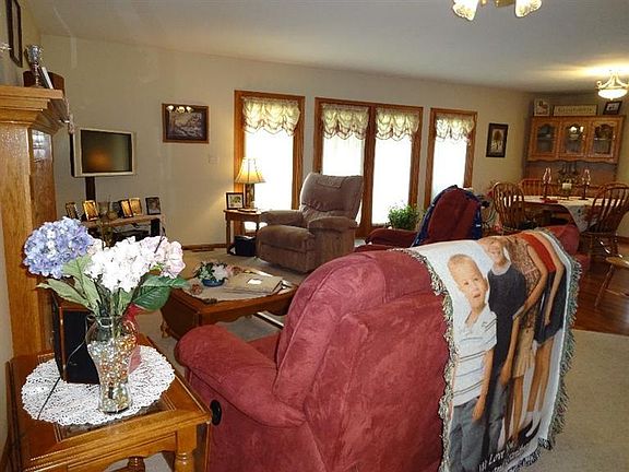 Custom ranch home in newer subdivision. Three bedroom full bath, master suite with walk in and full bath. Upper living room with gas fireplace, new laminate in dining area off kitchen. Many updates including appliances. Oak cabinetry through out. Main level deck with pergola and mood lighting. Full walk out basement with 4th bedroom and 3/4 bath, office featuring french doors, kitchenette, storage space. Surround sound in family room with a 2nd gas fireplace with panic room behind it. Under deck storage room with workshop. Exceptional use of space in this home!!!