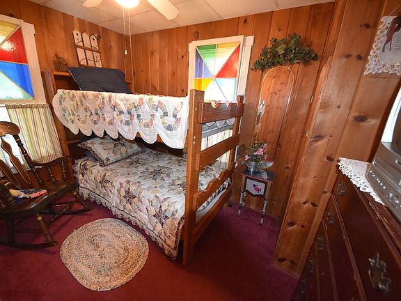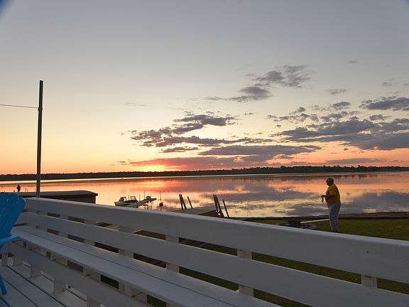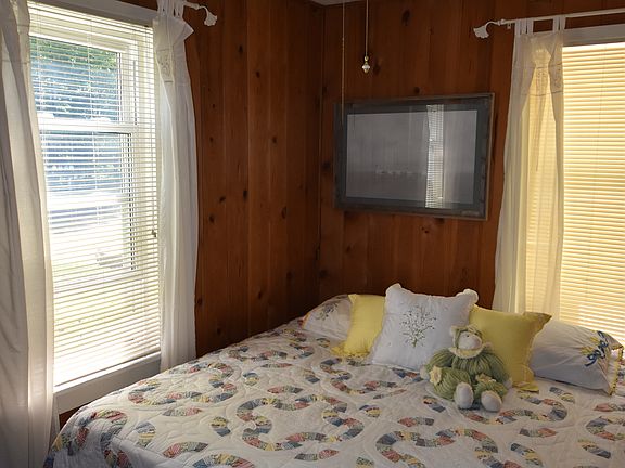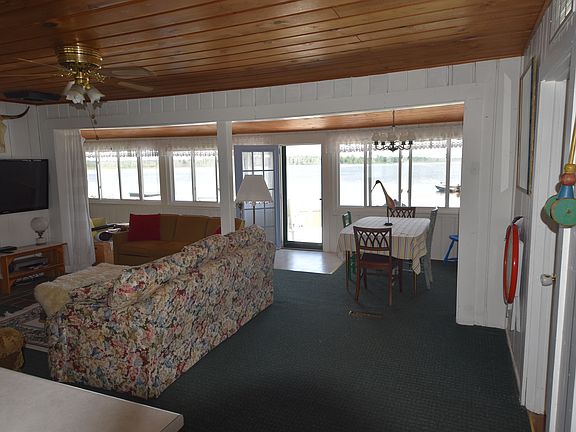 Adorable cottage/home with open floor plan, wall of windows facing lake, lots of room for guests. Large porch on water side, grass back yard, seawall and sandy beach. Front porch with seating area. Have furnace for year around living. Asphalt drive will hold 3-4 cars. Stove, frig and stacked washer/dryer included. Storage area for mower and water toys, 4 pieces wood dock included.
