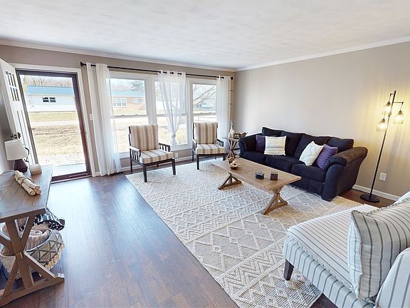 This 4-bedroom, 2-bathroom spacious ranch home sits in a cul-de-sac in Catlin! You will enjoy the living room and family room, front porch, fenced-in yard, and the above-ground pool. The current owner has a new liner that will be left with the house. You can also take advantage of the neighborhood pond that is located just outside your back door! In the last two years, most of the flooring was installed, both bathrooms were completely gutted and remodeled, and the primary suite was updated with new drywall and crown molding. In 2020, the roof and siding on two sides of the home were replaced. The furnace and water heater were installed in 2016, and there are replacement windows throughout. Do not miss your opportunity to own this stunning home!