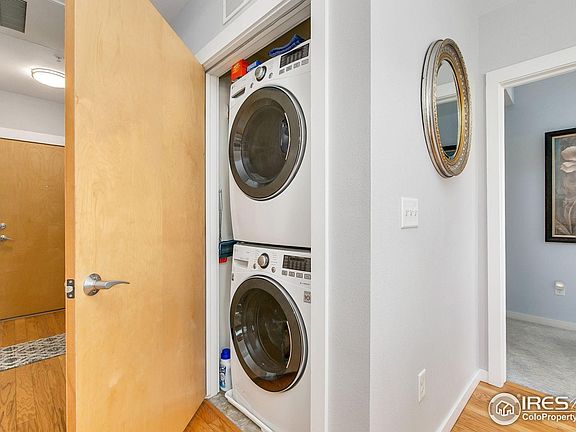 Lock-n-leave lifestyle in Old Town Fort Collins at an affordable price at this wonderful Penny Flats condo! The balcony of this home faces south so you'll enjoy plenty of natural light and sunshine while relaxing and enjoying the Old Town vibe and views of the city. So close to shopping and dining, the MAX transit bus for an easy ride to CSU and south Fort Collins, plus easy access to medical facilities and Highway 287 and I-25. Urban, contemporary loft with dark maple cabinetry, quartz counter tops and custom island, 10 ft ceiling adds to the feeling of space and airiness, engineered hardwood flooring, custom closet organizer in the primary suite and remodeled baths. Second bedroom/office is a great flex space you can set up however you'd like. It has a large closet for storage and is currently shown in the photos as a bedroom. Underground secure parking, 4' x 7' storage space, and lots of closet space within the home. Enjoy everything that Old Town Fort Collins can offer including Lee Martinez Park, local breweries, festivals and farmers markets, the Discovery Museum and numerous local eateries, entertainment venues and boutiques. Very affordable living - the HOA includes gas and water. Perfect option for both a full time home or a 2nd home in this great city.