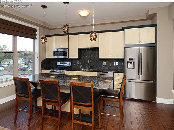 Enjoy spectacular views of the foothills and Old Town Fort Collins in the beautifully updated southwest corner unit on the 3rd floor. Kitchen boasts 2 yr. old stainless steel appliances, large kitchen island, and bamboo faced Tharp custom cabinets that include soft close drawers and cabinet lighting. Custom black-out blinds, full master bath and walk-in closet. 9x4 storage locker. With 2 underground parking spaces, leave your cars behind and enjoy 2 short blocks to downtown!
