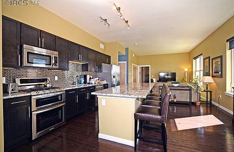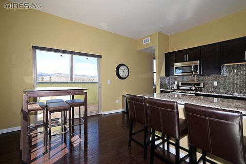 Live on top of Old Town! Stunning 4th floor southwest corner loft with 2 balconies featuring spectacular views overlooking Old Town. Great finishes throughout the home-slab granite countertops, SS appliances, wood floors, decorative glass tile accents, lighting, carpet - the list goes on and on. Two balcony patios - one off the master & one off the kitchen allow you to take in all the beauty of Northern Colorado. Underground parking & storage. Ideal location to take in all Old Town has to offer!