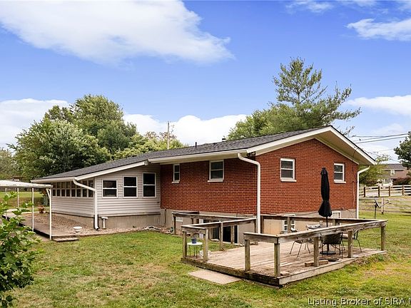 Includes two parcels for a total of half acre nestled in the heart of Floyd County! Discover this charming 4-bedroom, 1.5-bath home with real hardwood floors as you enter the living room, an eat-in kitchen that boasts upgraded cabinetry, stunning backsplash, and brand-new stainless-steel appliances (which are included). Adjacent to the kitchen, you'll find a delightful bright and airy sunroom. Down the hall, three bedrooms await, along with a full bathroom. The main bedroom includes a half bath for added privacy and convenience. The walkout basement provides a spacious open area, a laundry area with storage, and an additional bedroom. Outside, a deck overlooks the picturesque surroundings, perfect for relaxing or entertaining. This property also features two carports and a barn!  Located in a highly desirable area, this home offers not only comfort but also a prime location just minutes away from I-265, IUS, shopping, and dining. Don't miss out on this gem! Call today to schedule your private showing. Sq ft & rm sz approx.