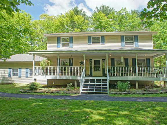Feel Like You Are Secluded in Paradise Yet Located in a Neighborhood Just Minutes from Downtown Tannersville with Shopping, Dining, The Crossings Outlets, Camelback Ski Mountain, Kalahari, Aquatopia, Camelbeach and Great Wolf Water Parks All Just Minutes Away! Private Wooded Lot with OVER 4 ACRES! Entrance Offers a Large Mahogany Porch Perfect for Relaxing and Rocking Away the Stress! Enter this Spacious 4 Bedroom, 3 Bath Home and You Will Immediately Be Drawn to the New Kitchen Complete with Qu artz Countertops, Tile Backslash, Stainless Appliances & French Doors Which Open to an Extra Large Deck Perfect for Private Outdoor Entertaining! Home has Amazing Large Office or Make the Perfect Rec Room! Wood Pellet Stove is Included Making this a Very Energy Efficient Home in the Winter!