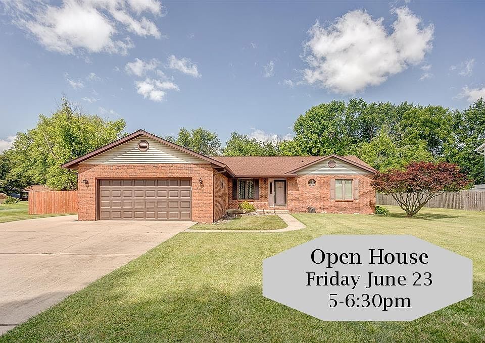 This lovely ranch home has wonderful curb appeal and sits on an quiet cul de sac street. The interior has an open floor plan with vaulted ceilings, a formal dining room option, a main floor laundry, and an eat-in kitchen with a pantry, new stainless appliances, and a breakfast bar. From the kitchen eating area, walk out to the covered deck and enjoy the beautiful, completely fenced yard. The master bedroom has its own private bathroom and a walk-in closet. The second bedroom offers two large walk in closets. In the past two years the sellers made many updates including installing the privacy fence, replacing the flooring for the entire house with luxury vinyl plank, converting the stove to gas, installing many new light fixtures and fans, new drain tile in the back yard, and removed a tree. New roof 2021, new a/c & furnace 2021, water heater 2019.Large storage shed & additional concrete parking pad adjacent to the two car garage offering lots of extra storage & parking!