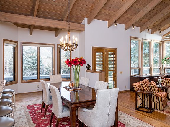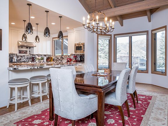 Private and Pristine 3BR & loft, 3.5BA home in Sun Valley, ID. Massive primary suite, elevated views, extreme privacy on a dead-end street. Newer 50-year Davinci Roof, cathedral wood ceilings, 2022 kitchen, Gaggenau ovens, Sub-Zero fridge, Thermador range, Dacor microwave. Adjacent lot available. Elkhorn amenities: pickleball, tennis, pools, sauna. Surrounded by HOA land, hiking and skiing.