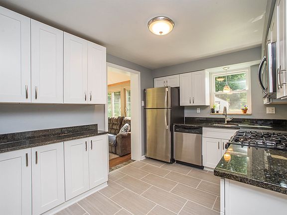 Check out this solid brick cape cod with a ton of privacy at the end of a cul-de-sac. Located in Upper St. Clair School District. Beautifully refinished main level hardwood flooring and neutral tones welcome you into this charming home. Completely updated kitchen, with new stainless appliances, granite countertops, white shaker cabinets, and new ceramic floors. Kitchen connects to the dining room and gorgeous sun room with cathedral ceilings and 3 walls of windows! Super light and bright dining and living room - with beautiful stone fireplace. Sunroom with sliding glass doors opens a large fenced in backyard complete with concrete patio, shed for outdoor storage and swing set. Large Side yard to the right of the house as well - huge lot! Big master bedroom and secondary bedrooms, as well as bath on each floor. Dry basement(interior french drain) could be easily finished for another game room. Many updates, totally move in ready.