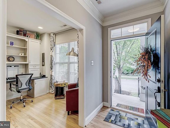 METICULOUSLY MAINTAINED FORMER COMMUNITY MODEL HOME W/ 4 FINISHED LEVELS OF UPGRADED STYLE & SPACE - located just steps to downtown Towson this former Bozutto Homes model offers the most discerning buyer all the available luxuries and amenities in Towson Green including recently added home office at ground level with custom built-in cabinetry, granite counter tops, under cabinet lighting and convenient half bath leading to a temperature controlled 1 car garage. The home features hardwood floors and crown molding throughout, designer kitchen with ss appliances, quartz counter tops and tile back splash with private rear deck off kitchen, separate dining room and light filled large living room. Upper levels provide two bedrooms suites with luxurious baths, dual sinks in owner suite, walk-in closet, convenient hallway laundry and top level bedroom/club room complete with brand new full bath and wet bar leading to your roof top deck great for entertaining! Remainder of 10 year tax credit exists on this home saving the buyer 50% annually on property taxes - tons of upgrades added & great location w/ easy street parking in front of home make it the best home available in the community, come take a look!