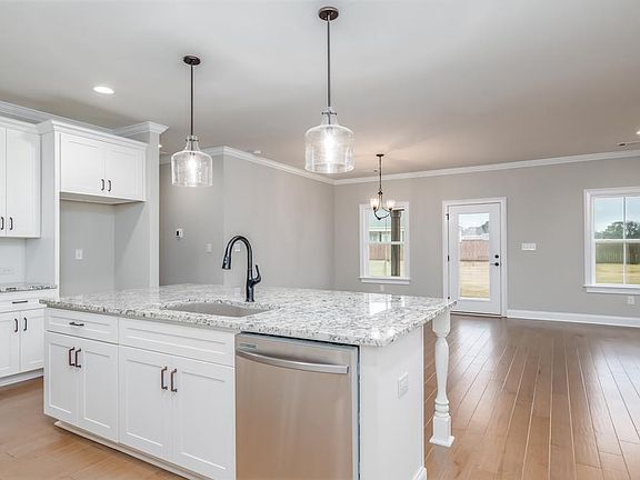 A remarkable one-story layout, the "Melbourne" is a spacious 4-bedroom plan designed for living. Beautiful foyer area with adjacent dining room leads into an open kitchen with a large granite island, granite countertops and stainless steel appliances. This kitchen also features a convenient pantry, an adjacent mudroom and powder room as well as offer a large breakfast area and great room. The master suite has a roomy design including a sitting area perfect for lounging. The master bath is equipped with double granite vanities, garden/soaking tub, separate tiled shower with a glass door, and a spacious walk in closet. This quaint home is perfect for a charming family lifestyle. MOVE IN READY.