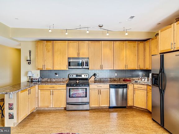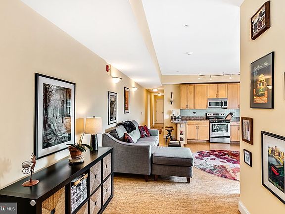 Location location location! Welcome home to this well maintained fourth floor, two bedroom and two bathroom condo on the most sought after block on Mill Street. Imagine living in a small town where you can walk to the local restaurants, shops and brewery's. The owner has kept up with this home over the years constantly maintaining and upgrading. As you enter, you notice the cork flooring runs continually thru the entire unit and beautiful river views from all the windows. Newer solid wood shaker kitchen cabinets, countertops and tile backsplash complimented with stainless steel appliances. Nine foot ceilings through out with neutral paint colors. As you walk down the hallway past the kitchen, there is the first bedroom to the right. Plenty of natural sunlight, ceiling fan and large closet. Continuing down the hallway, a larger linen closet for storage. The common hall bathroom features a large whirlpool tub, pedestal sink and newer lighting fixtures. At the end of the hallway is the utility closet that has a stackable washer and dryer and water heater. Turning right into the master bedroom the first thing you notice is the tray vaulted high ceilings and plenty of natural light. There is a large walk-in closet with plenty of storage. The master bathroom has been renovated with a large custom tile shower, tile floors and newer bathroom vanity. This unit also has a dedicated in door parking space in the garage where the elevator is conveniently located. Conveniently located near I-95, the PA turnpike, the Burlington- Bristol bridge as well as the Bristol train station.
