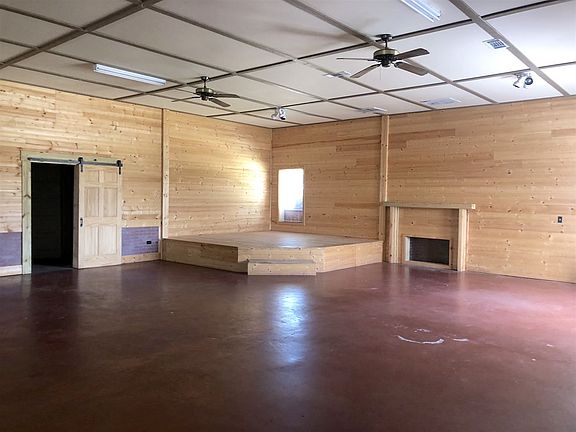Great opportunity to open restaurant, event venue, or shop! Former Legion building features cement floors in large open area. Pine walls and barn doors add tons of character for your business venture. Raised platform in gathering area provides perfect area for band. Front foyer/entrance has half bath off of each side. Large kitchen features stove and fridge. Additional rooms off of gathering area provide extra storage or meeting areas. The possibilities are limitless!!