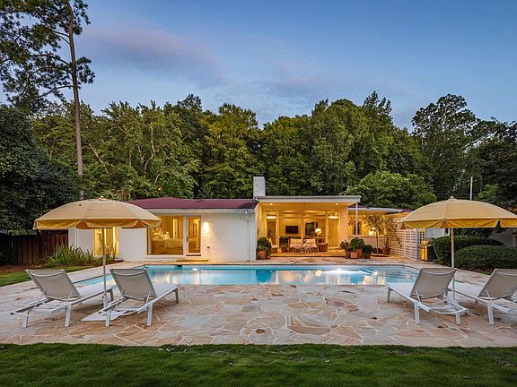 Rare opportunity! Birmingham meets Palm Springs in this luxury, faithfully redone and fully upgraded midcentury modern home nestled in Crestline. Gut renovated in 2020 and subsequently featured in an interior design book written by the former editor of House Beautiful, the home sits on a large, extremely private lot and is one-level living at its finest. House boasts expansive floor-to-ceiling windows, with views of greenspace all around, an open-air loggia - great for al fresco entertaining - and a beautiful, gas-heated saltwater pool for lounging or laps. The home includes four bedrooms - with his and hers master closets - and three bathrooms with custom Italian terrazzo and marble throughout. A stunning orchard stone fireplace wall anchors the light-filled great room, with a gorgeous custom kitchen at one end. Only a three-minute walk to Mountain Brook Junior High and a ten minute walk to Crestline. This place is truly one-of-kind - come and see for yourself!