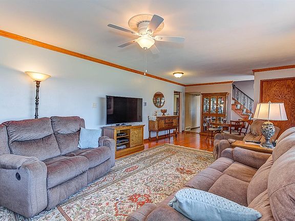Custom built brick cape cod with 3 bedrooms, 2.5 baths, 2 laundry rooms, refinished hardwood floors, remodeled kitchen w/bench seating, new blinds, new ceiling fans/lights in every room. Game room w/wet bar & stools, FR w/wood burning stove, study, walk-out basement. Large patio, beautiful yard & RV storage building.