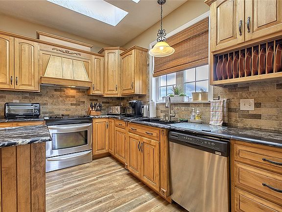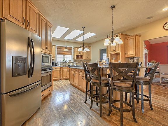 Welcome to this 4 bedroom/4.5 bathroom private countryside home, nestled on 4.82 acres! The master suite includes a walk-in closet, a 13x7 sitting area, and a luxurious bathroom featuring a soaking tub and separate shower. A guest suite is located above the garage. The kitchen features maple cabinetry, granite countertops, and premium appliances. Entertain in the vaulted great room, illuminated by natural light and a gorgeous stone, double sided fireplace. The spiral staircase leads to a loft, offering panoramic views and a bonus room. Totaling over 3500 square feet on the main floor, the finished basement adds additional living space including a theater room, laundry room, and storage. The attached 3-car garage and additional lower garage provide space for vehicles and hobbies. Step outside to your private deck and savor the breathtaking scenery that surrounds you. This exceptional home includes a home warranty! Don't miss the opportunity to make it yours – schedule a viewing today!