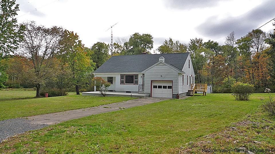 This lovely two bed, one bath cape with many updates feels very private, yet is only minutes away from Woodstock, Phoenicia and the Ashokan Reservoir. Lovely living room with picture window has a view of fields and trees, with an old fashioned fireplace surround and wood stove insert. The dining room overlooks the secluded back yard. The property is bordering on three sides by 42 acre that are classified "private forest" and provides breathtaking views of the rolling fields, mountains and a pond. The front of the house has a large terrace, with a new deck off of the kitchen entrance. The one car garage and full basement with very high ceilings provide a lot of extra storage. The tall attic could be a second story or vault the ceilings! Brand new "lifetime" architectural roof was installed less than 6 months ago. New bathroom fixtures, new front door and refinished hardwood floors. Walls are primed and ready for your colors. This home just needs your finishing touch. Offered as is. Enjoy exceptionally low taxes and a stellar location make this a great value.