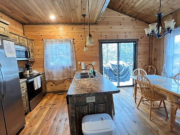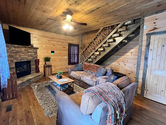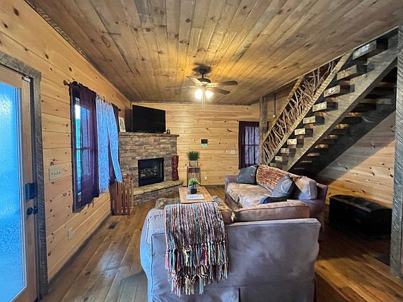 What an opportunity! Turn key cabin in Cherry Log Mountain with Mountain View and creek/waterfall. Very private and better than new! Rustic custom cabinetry and rhododendrum railing on stairs. spacious kitchen with island and dining area opens to cooking deck. Wood floors throughout and rustic wood countertops in bathrooms!Located 10 minutes to Blue Ridge. Property line goes to small pond and center line of creek with waterfall. This one won't last!