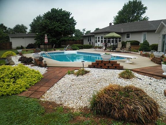 Immaculate, wonderful Pleasant Hope home that is perfect for all. Mature, beautiful landscaping, covered porch, sun room, two large living rooms, updated kitchen with pantry, perfect master suite with two walk-in closets and Jacuzzi tub, office area, 3 total baths, 3 garage spaces, detached garage/shop, fenced yard, and an inground pool with a pool house/changing area. The firepit area completes the wonderfully landscaped back yard. HVAC system in 2012, new roof in 2008! The family room even has a place for a wood/pellet stove that could be added. Corian countertops, appliances that all stay, thermopane windows and curb appeal. Nice level yard and level drive for basketball, bike rides, etc. See this one before it sells.