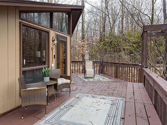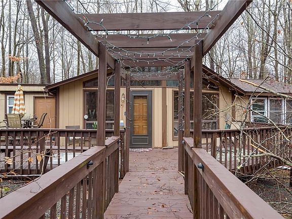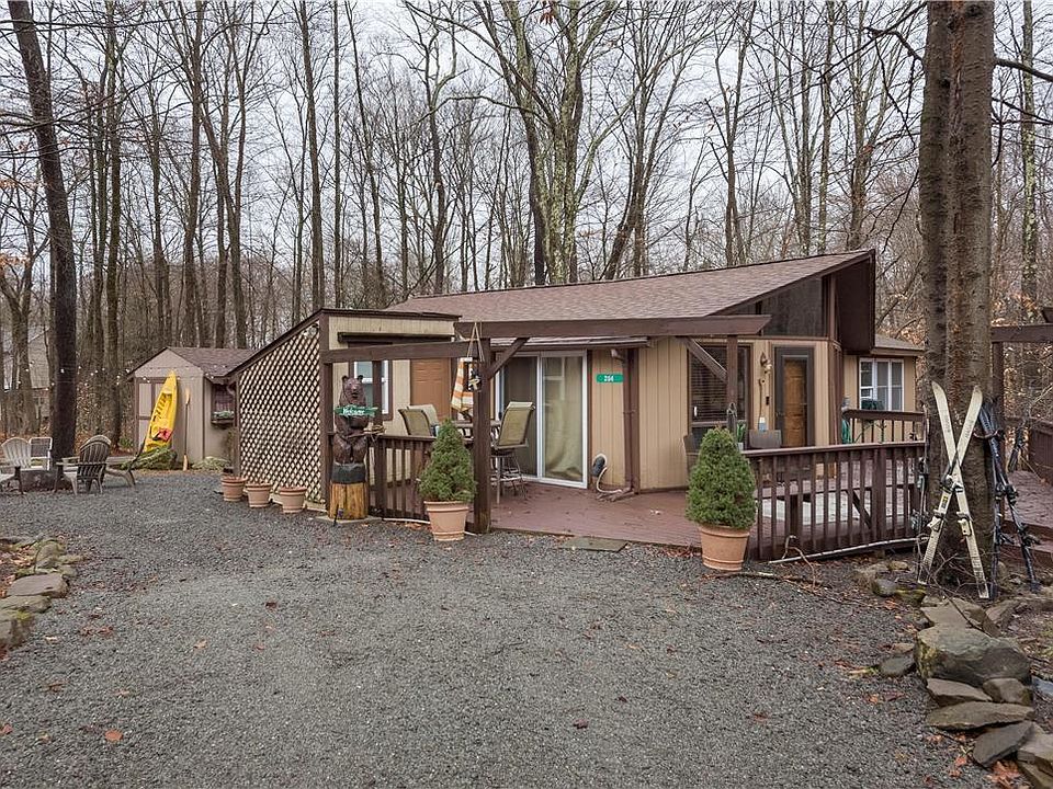 This Perfect Mountain Home is located in Amenity Filled Arrowhead Lakes Community. This Beauty features 3 Nice Bedrooms, 2 New, Full Bathrooms with Marble floors, Family Room, Living Room with electric Fireplace. The Modern Kitchen offers a Large Island with seating, ample cabinets and counter space for food prep. Step out onto the Large Deck, Nice Flat yard with Fire Pit Area, Large Sheds for storage and Driveway with Lots of Parking. The standup crawl space has a sump pump and has been encapsulated. Public sewer and window AC units. Being sold fully furnished! Walk to the pool. Amenities include lakes, pools, fishing, boating, clubhouse, sports etc. Close to all Pocono attractions and convenient to Route 80 and Route 380. This is a must see. Call for your private showing today.