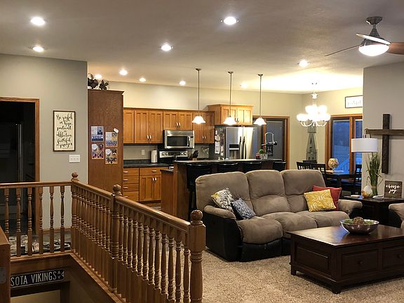 Magnificent, spacious ranch with finished walkout basement in Sully's new development near Lynnville-Sully Schools. A covered porch welcomes you along with entry foyer. An open floor plan and Pella windows provide lots of light. Kitchen island with raised countertop with seating for 4, pantry with pull out drawers, 2 Lazy Susans, mission style oak cabinets and stainless steel appliances. Enjoy west views from dining area that also leads to large deck with maintenance free decking and railings. Also, on the main level is a MBR suite with shower and double sinks. Down the hall is a full bathroom, laundry with utility sink and 2 more bedrooms. The finished LL features a large family room with overhead projector & screen, 2 bedrooms, full bath and walkout to a large patio. A few more steps and you'll be standing on your own private basketball could with adjustable Goalsetter basketball goal. Other amenities include a 3-car garage, geothermal HVAC, 2 HWHs, generator hookup, and more.
