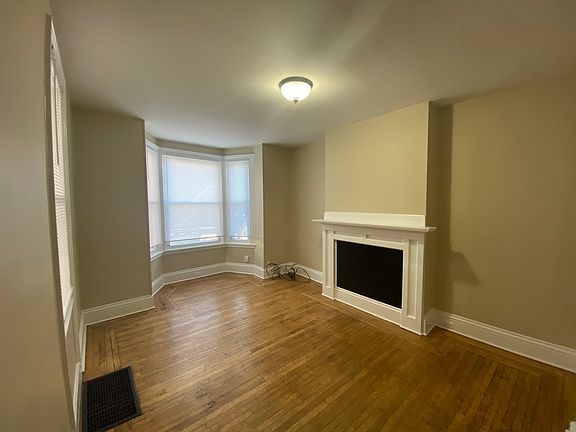 Discover this beautifully updated historic townhome featuring elegant hardwood floors and large bay windows that flood the space with natural light. The layout includes a convenient first-floor bedroom and full bath, while the second floor boasts three additional bedrooms and another full bath. The modern kitchen comes equipped with an electric stove, refrigerator, dishwasher, microwave, and laundry units, providing everything you need for comfortable living. Step outside to enjoy a partially fenced backyard with a small patio, ideal for outdoor relaxation, along with two off-street parking spaces for added convenience. Please note that tenants are responsible for all utilities. This home features gas heat and does not have air conditioning. For a tour of this lovely property, contact Sterling Property Management today! One year lease. Tenant pays all utilities - gas, electric, water, sewer and trash. No Smoking. Pets may be considered with additional fees.