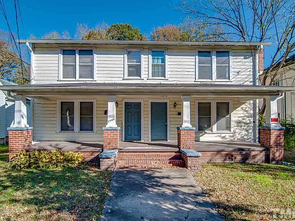 Handsome 2-story Craftsman style vertical split duplex in Old East Durham. Vintage details include high baseboards, pine floors & doors, heating vents & bathroom tile. Deep lot. Driveway on right side, only. Conveys as-is.