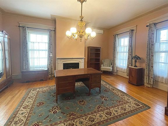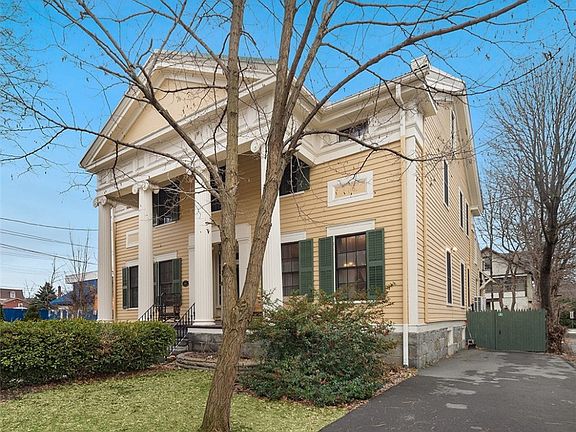 If these walls could talk…Grand 6 BR, 4 Bath Greek Revival in downtown -- 4-minute walk to the Ithaca Commons. Portico with 25-foot columns. Spacious rooms with 12-foot ceilings, crown molding, pocket doors, porcelain doorknobs, original brass chandeliers, 7 fireplaces, hardwood floors, huge windows with modern storms. Extensive renovation -- hundreds of thousands of dollars: energy efficient mini- splits for heating & cooling AND solar panels, updated electric, updated plumbing, insulation, metal roof. Yet, carefully preserving the character and architectural details. A new cook’s kitchen incorporating the 1920s vintage sink & cabinets with matching new cabinets, island, marmoleum floor and the pantry of your dreams! Renovated tile baths with radiant heat. Rebuilt carriage house – ideal for remote office/artist studio!  Private fenced back yard and patio. Built by Chauncey Grant in 1835, one of the founders of Tompkins Trust Company. Ready for its next chapter – YOUR family’s story!