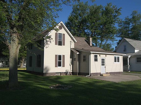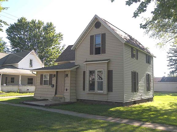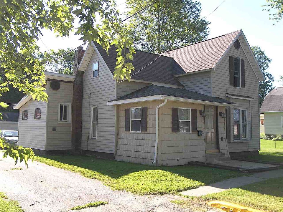 Immediate possession available with this refreshed 3 bedroom in-town charmer on one and a half lots in a convenient location. Front entry room could be home office or computer room, open kitchen with knotty pined dining room, some original hardwood flooring, large upper level landing plus floored 10x14 attic area that could be a studio or children's play area. Other amenities include: newer roof shingles, maintenance free vinyl siding, GFA furnace (1994), newer water heater (2013), modern breaker box, main level laundry, unfinished partial basement (for mechanicals and storage), concrete rear patio, 2 car detached garage, ample off-street parking (in rear), large level lot with room for children and pets. Great location near schools, major employers and downtown conveniences.