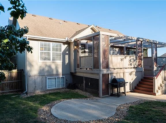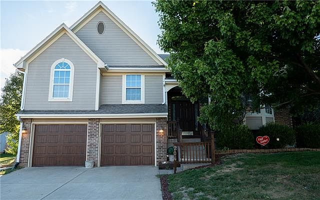 OPEN Layout! Raymore home features: 4BD/3BA, over-sized garage, double deck w/Master Bedroom access, sub-basement for great storage! Ideal,
