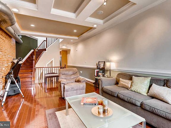 2BR,3 Full BA Patterson Park home w/parking is a SHOW STOPER! Exposed brick, hardwood floors, coffered ceilings, extensive moldings,surround sound and open 3 level staircase make this one over the top! Large chef's kitchen with GE Profile SS appliances, granite, and gas cooktop w/hood. Finished basement w/full bath and private 3rd bed, studio, or office. Beautiful master w/jetted tub & sep shower.