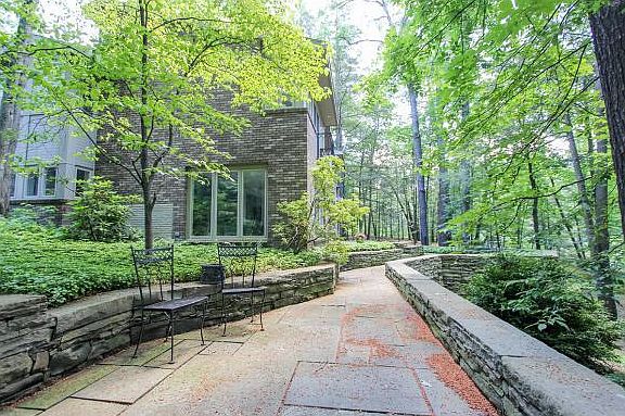 Masterpiece 5 BR, 5.5 Bath Mid-Century Modern in Cayuga Heights. Private waterfalls on 2.25 Acres. Lake and sunset views. Natural wooded setting. Flagstone patios and gazebo. Open Floor Plan over 4 split-levels. Inspired by the organic architecture of Frank Lloyd Wright. Luxurious oasis was built with the finest materials. State of the art heating and cooling systems. Walls of glass. Hardwood, marble, Italian tile floors. Two master suites: ideal for multi-generational living. Gourmet kitchen with High end appliances and finishes. Library. Gym. Wine Room. Office. 3-Car Garage. Simply sublime.
