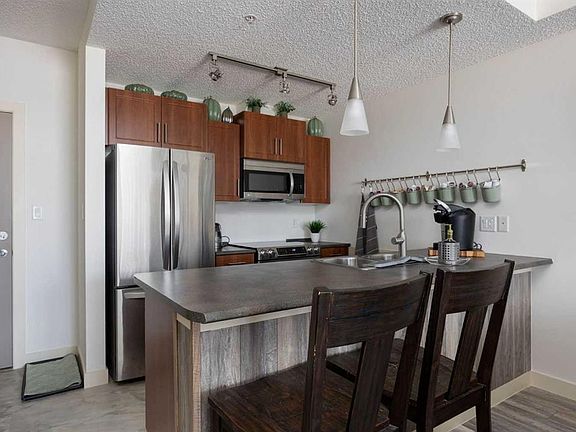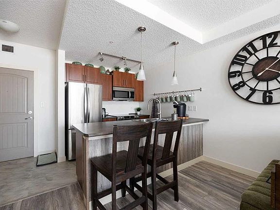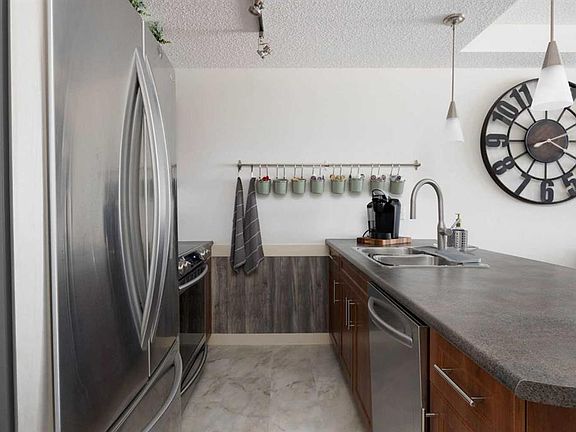 Step inside this Eagle Ridge gem and you’ll instantly feel like you’ve been dropped into the pages of a home design magazine. From the perfectly styled living room to the custom closet system that Marie Kondo would approve of; everything you see stays. Yes, that means it’s fully furnished and turn-key!! This freshly painted, one-bedroom condo has brand-new laminate and vinyl plank floors underfoot, stainless steel appliances (induction stove) in the kitchen, and a covered balcony that’s just begging for sunrise coffees or northern-lights spotting. Northeast exposure keeps things bright without ever roasting you out in the summer months. Because the building is fully concrete, you’ll appreciate just how quiet your new home is; ideal for commuters craving peace after a long shift, executives who don’t want to hear a peep between Zoom calls, or first-time buyers who love stylish serenity. Investors, you’ll love that it’s an instant turn-key rental. The primary bedroom is as cozy as it is practical, with a walk-through closet complete with custom organizers leading into the bathroom. And yes, there’s even in-suite laundry; no more hauling baskets around. Outdoor enthusiasts can rejoice, you’re steps from the Birchwood Trails, a playground in the complex, and all the amenities Eagle Ridge is famous for (Restaurants, Bar, Movie Theatre, Bowling, and More!). Plus, the condo comes with a titled parking stall and a titled storage unit; bonus points for convenience. So whether you’re dreaming of a chic starter home, a low-maintenance commuter pad, or an income-ready investment, this unit delivers. Just bring yourself - everything else is already here waiting.