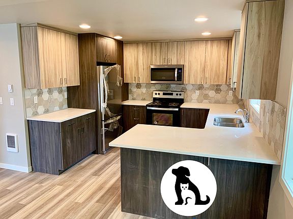 This townhouse was completely renovated in 2020, so you can have a new place that's just a couple blocks from campus. We outfitted the kitchen and bathrooms with the best luxury materials, including quartz counters and stainless steel appliances. The washer and dryer are conveniently located inside, and we're even including a 65" wall-mounted TV in the living room. Every room has independently-controlled heating, as well as an electronic doorknob, so losing your keys is a thing of the past! Two reserved parking spaces are included, and you can add additional spaces for $25 per month. Next to your door, you'll have a secure package delivery box, so your Amazon orders will always be safe from porch pirates. This home is PET-FRIENDLY! For each pet, there is a $20 monthly fee and a one-time $225 refundable deposit. We are a small company, and we work hard to give personalized service! Sarah will be taking care of all your needs from your first showing through your final move-out. Call or text us now to schedule your live or virtual showing! 9/13/25 to 9/6/26; $35.55 monthly fee covers garbage; Pets allowed with fee and deposit