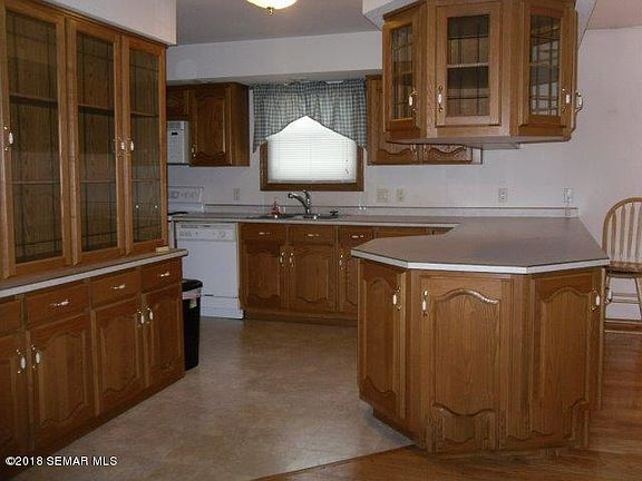 Huge Ranch. Open Floor Plan,SUPER kitchen, dining room with custom cabinets, built-ins, 2 pantries, china cabinet, breakfast bar. Master bedroom with bath and w/i closet plus 2 more bedrooms with w/i closets. Full basement with walk out attached 2+ stall garage. All located across from local park in small town just minutes from 1-90.