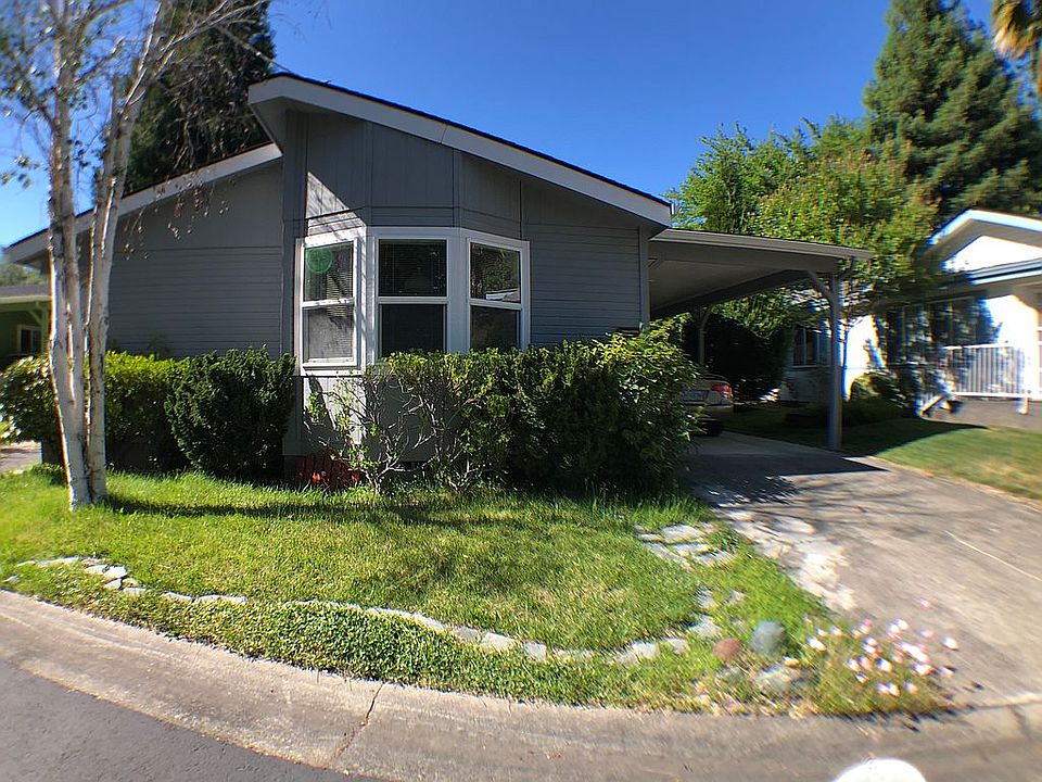 Highly sought after Highland Heights Estates, Hidden Oasis! Immaculate 3 bedroom, 2 bathroom manufactured home that has everything you could ever need! Brand new carpets and paint throughout the entire house. Light and airy kitchen with tons of natural lighting with a breakfast nook, plenty of cabinets, counter space, as well as a new lighting fixture. There is a laundry and mud room off the kitchen that has a utility sink and custom utility closet. The formal dining room can be used as an office or den, and opens up into the large living area with vaulted ceilings. The master bedroom has access to an enclosed patio room that opens up into the garden, with a large walk-in closet, HUGE wheelchair accessible shower with a safety bar and three shower heads, and a double sink. The large extra bedroom has a walk in closet and brand new ceiling fan. Listen to the sounds of the beautiful water feature as you enjoy your cup of coffee inside out outside, with enough landscape to putter but not overwhelm. Clubhouse access with a full kitchen and enough room to entertain your family and friends. 3 guest parking spots directly across the street. 2 outdoor sheds, and a large covered carport with skylight viewing for patio night hangouts.