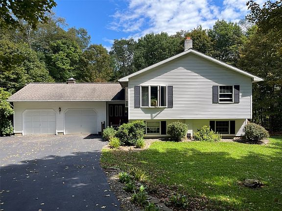 Move in ready 3 bedroom 2 bath raised ranch home on a quiet country road situated on over 2 acres ready for you to put your personal touches in place and make it your own. Some new paint and sellers are installing new carpeting in the next few weeks and has a new hot water heater as well. Far enough out for quiet enjoyment of nature but still close to amenities and access to highway. Enjoy sitting on the back deck listening to nature or entertaining family and friends. Spend the chilly nights in the family room cozying up to the wood stove reading a book or enjoying your favorite movie. Hot tub and fireplace are "as-is".