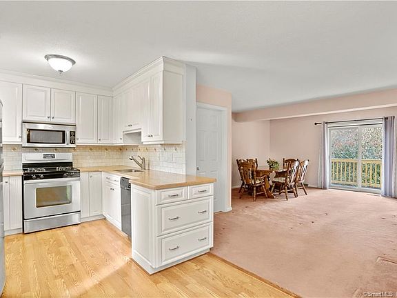 Come see this newly listed 2 bedroom, 1 and a half bath townhouse in the desired "Maplewood" condominium complex in Derby. Enjoy a remodeled eat-in kitchen with white Shaker cabinets and stainless appliances. A spacious living room opens up to a private deck perfect for outdoor dining or enjoying the warmer weather months. Upstairs you will find a large master bedroom with a built-in vanity and plenty of closet space. Additional attic storage space, an in-unit laundry room, private 1 car garage, and ample guest parking add to the convenience and easy living...