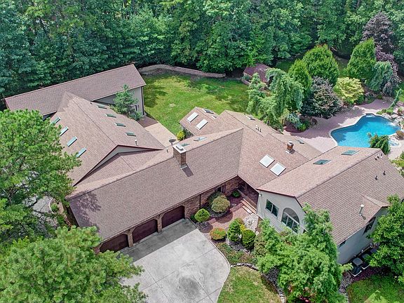 Pull in, move in,& enjoy your life! Live in your expansive interior& gaze onto your oasis backyard! Enter from 2 driveways & park in roomy driveway or 10car garage (1door is RV size). Bonus pass-thru garage door to backyard! HOME WARRANTY. All rooms have recessed lights, 20+skylights, lg Anderson windows, ¢ral vacuum. Remodeled 1st floor common rooms have semi-open floor plan. Kitchen w/ granite tops, XL island. From Kitchen/Family Room greatroom area, walk thru your Dining Room& step down into your Living Room w/ skylights, wood fireplace, and panoramic backyard pool view! Landscaped private yard w/ pool & patio to enjoy immediately! Inground pool w/ waterfall, jacuzzi, large paver patio. 2 storage sheds, 2 patio areas, pool house-kitchen/bar & full bath. Expansive 2nd floor Master Suite w/ fireplace, sitting area, & extra room w/ balcony (office, exercise room, nursury). Extra usable space - 1050sf Finished 4-Room Basement w/ full bath, & 3090sf Garage!!